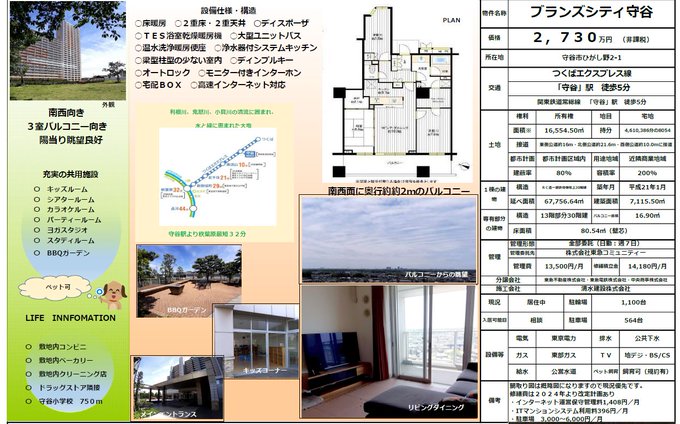◇ ブランズシティ守谷 ◇ つくばエキスプレス 守谷駅 徒歩5分 ◇ 守谷から秋葉原 最短32分 ◇ 緑に囲まれた大地に すべてがそろった大規模マンション 550戸 ◇ 南西向き 眺望・日照良好 ◇ 2730万円 ◇ エアリータワー棟 usqua-re.com/%e7%89%a9%e4%b… pic.twitter.com/ND7C5hLubG