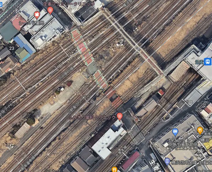 生見尾踏切、人身事故。 記憶にあるだけで事故で3人は亡くなってる。 知らない人はあまり想像できないかもしれないが、横須賀線・京浜東北線・東海道線を平面でわたり東海道貨物の高架をくぐって京急線を平面でわたる。 緩いカーブとアップダウンで上り方向の電車から踏切の様子は見えないと思う。 pic.twitter.com/FLBkJBO2u2