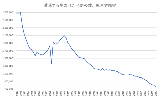 日本経済の最大の問題:少子化 1947年に270万人の子供が生まれた。 2023年は76万人。192万人の減少。72%の減少。 極論を言えば、日本の社会保障は積立ではないので、生まれた270万人の子供は社会保障を払ってくれる子供をあまり作らなかった。 それによって、今の現役世代は苦しんでいる。 この問題の解決法は生産性向上と賃上げしかない。